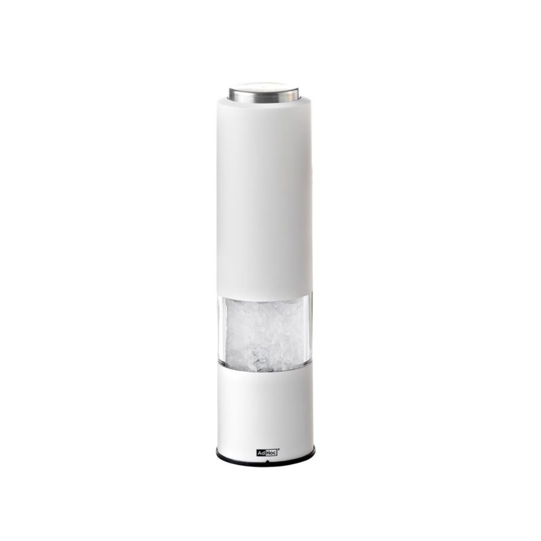 The AdHoc Tropica Electric Pepper/Salt Mill delivers effortless grinding at the push of a button. Its CeraCut® ceramic grinder ensures precise, durable performance, while an integrated LED light and smart closure keep your workspace clean and controlled. Crafted from stainless steel, acrylic, and plastic, it’s a sleek, functional piece of German design.